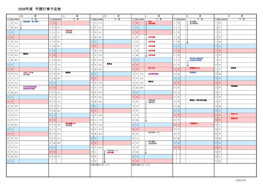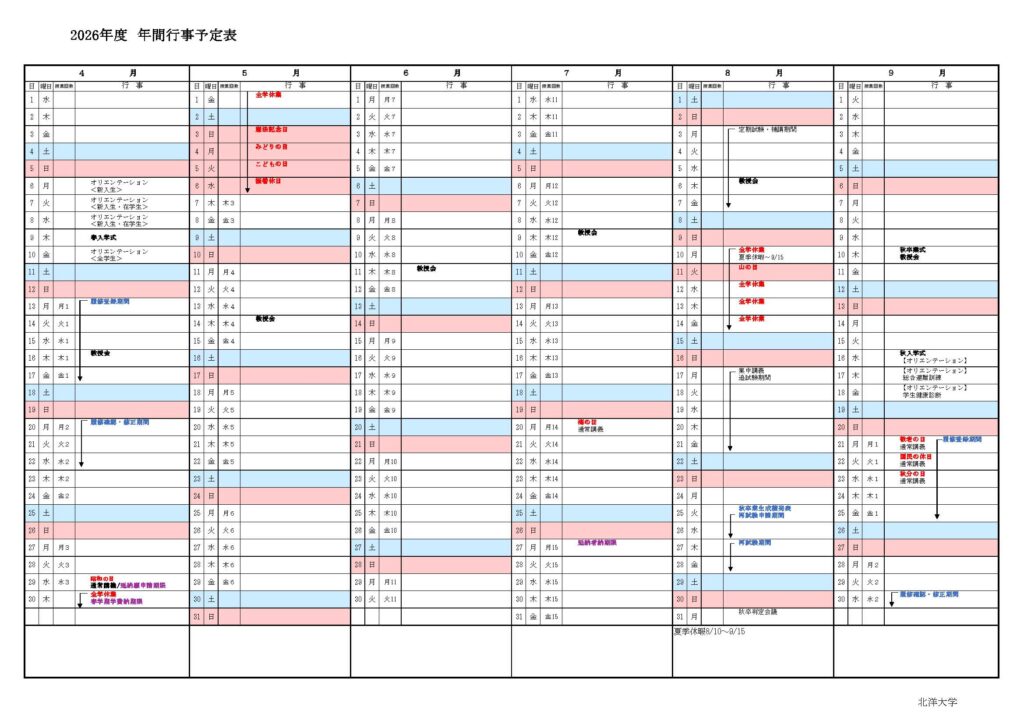 2026年度 年間行事予定表